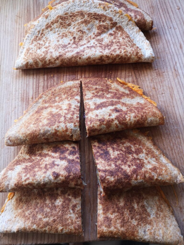 Quesadilla er en lækker mexicansk ret som består af en pandekage (fuldkorns tortilla, købt eller hjemmelavet) med ost og en eller anden form for fyld. Som regel en blanding af noget kød og nogle grøntsager.
